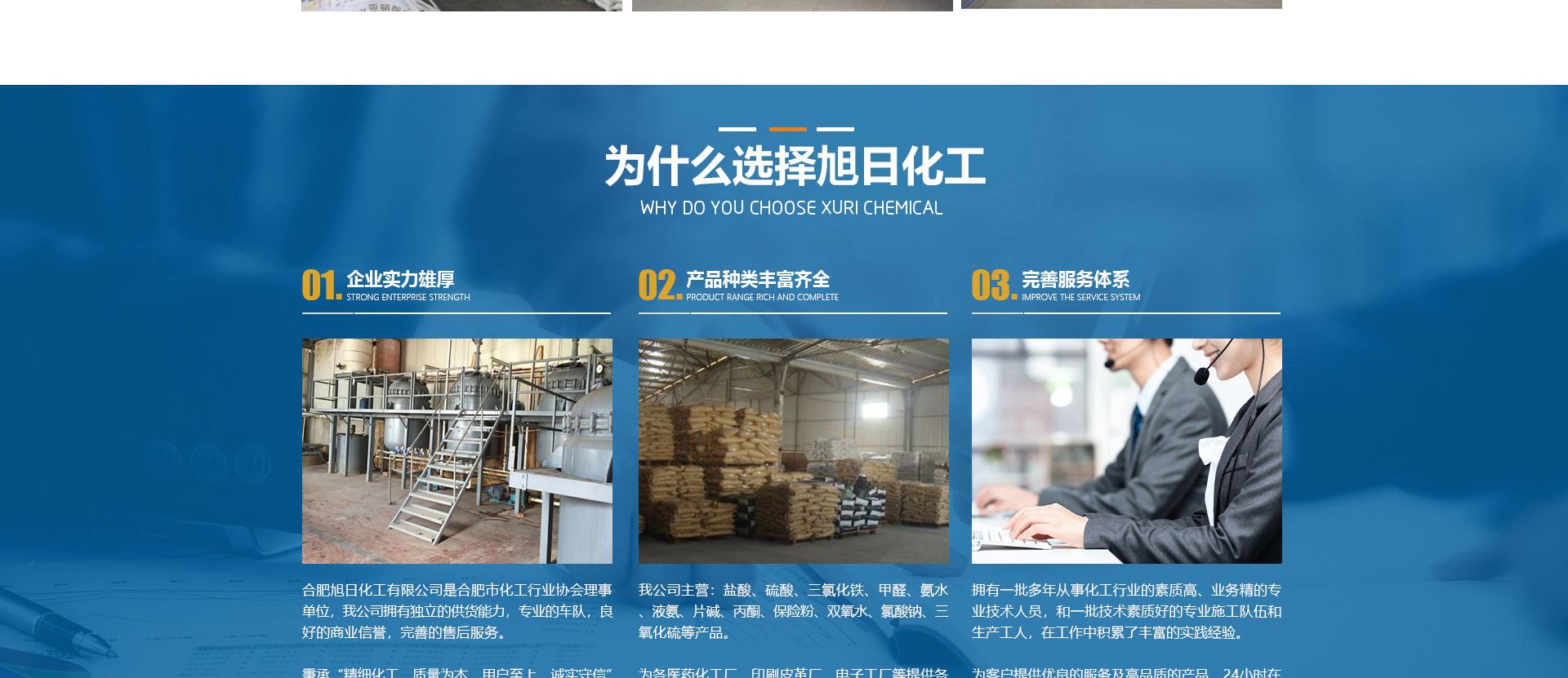 合肥旭日化工有限公司是合肥市化工行業(yè)協(xié)會(huì)理事單位,該公司擁有獨(dú)立的供貨能力,專業(yè)的車隊(duì),良好的商業(yè)信譽(yù),完善的售后服務(wù)。秉承“精細(xì)化工、質(zhì)量為本、用戶至上、誠(chéng)實(shí)守信”的企業(yè)理念。從事各類化工溶劑和原料的國(guó)內(nèi)貿(mào)易;為各醫(yī)1藥化工廠、印刷皮革廠、電子工廠等提供各種化工原料配套采購(gòu)。目前,公司正朝著以貿(mào)易為基礎(chǔ)、以實(shí)業(yè)為依托,全球采購(gòu)、全國(guó)銷售,內(nèi)外貿(mào)一體化,上下游一體化,具有綜合增值能力和復(fù)合競(jìng)爭(zhēng)能力化工原料供應(yīng)商。本公司主要經(jīng)營(yíng)的產(chǎn)品有:鹽酸、硫酸、三氯化鐵、甲醛、氨水、液氨、片堿等。合肥旭日化工有限公司為客戶提供優(yōu)良的服務(wù)及高品質(zhì)的產(chǎn)品,本公司經(jīng)銷的各種產(chǎn)品不僅在安徽地區(qū)深受用戶好評(píng),而且具有很高的市場(chǎng)占有率,產(chǎn)品行銷全國(guó)各地區(qū)。